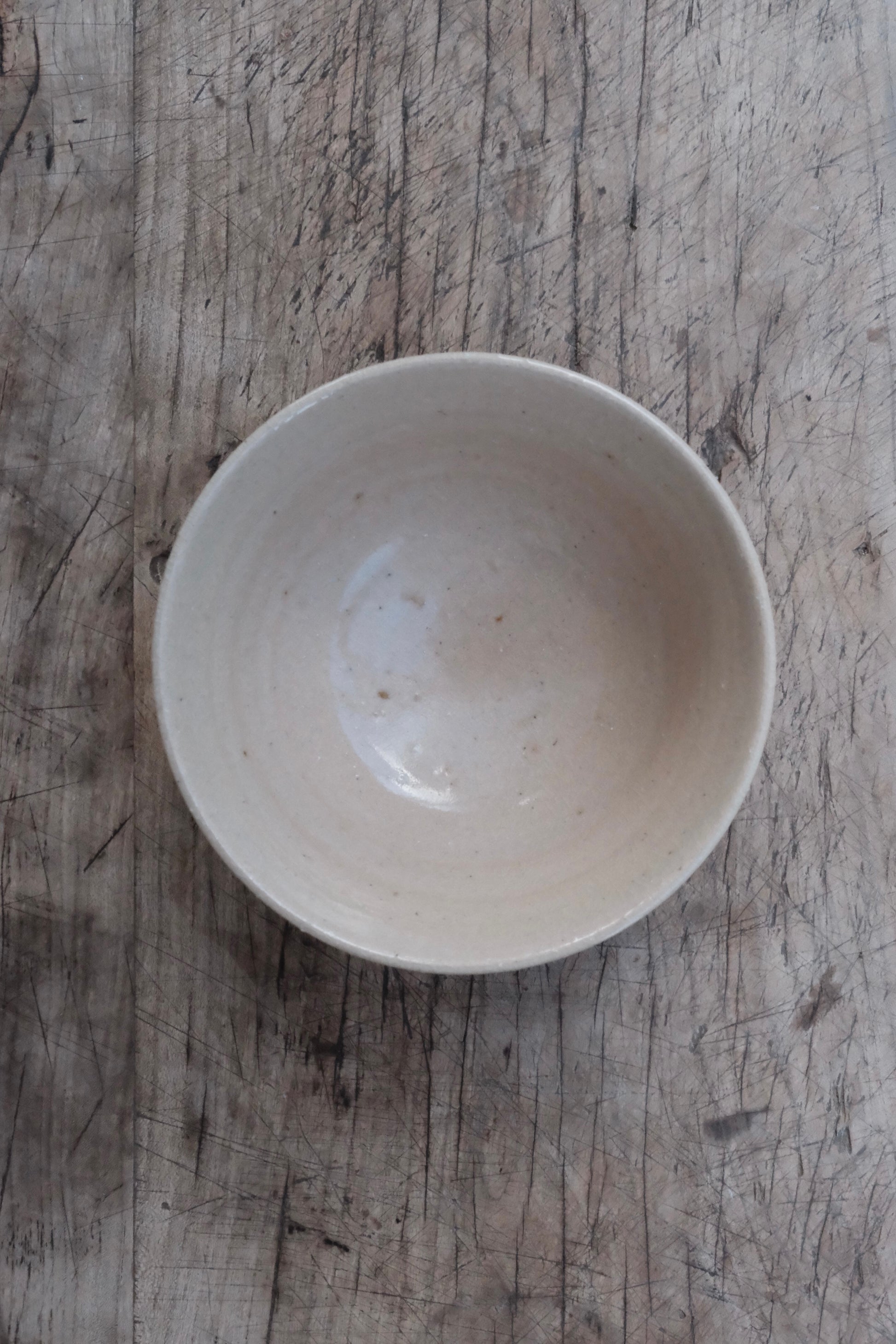 Antík matcha-skál, handvalin á Toji-markaðnum í Kyoto. Hver skál er handgerð og hefur sín eigin einkenni í formi, áferð og litbrigðum.