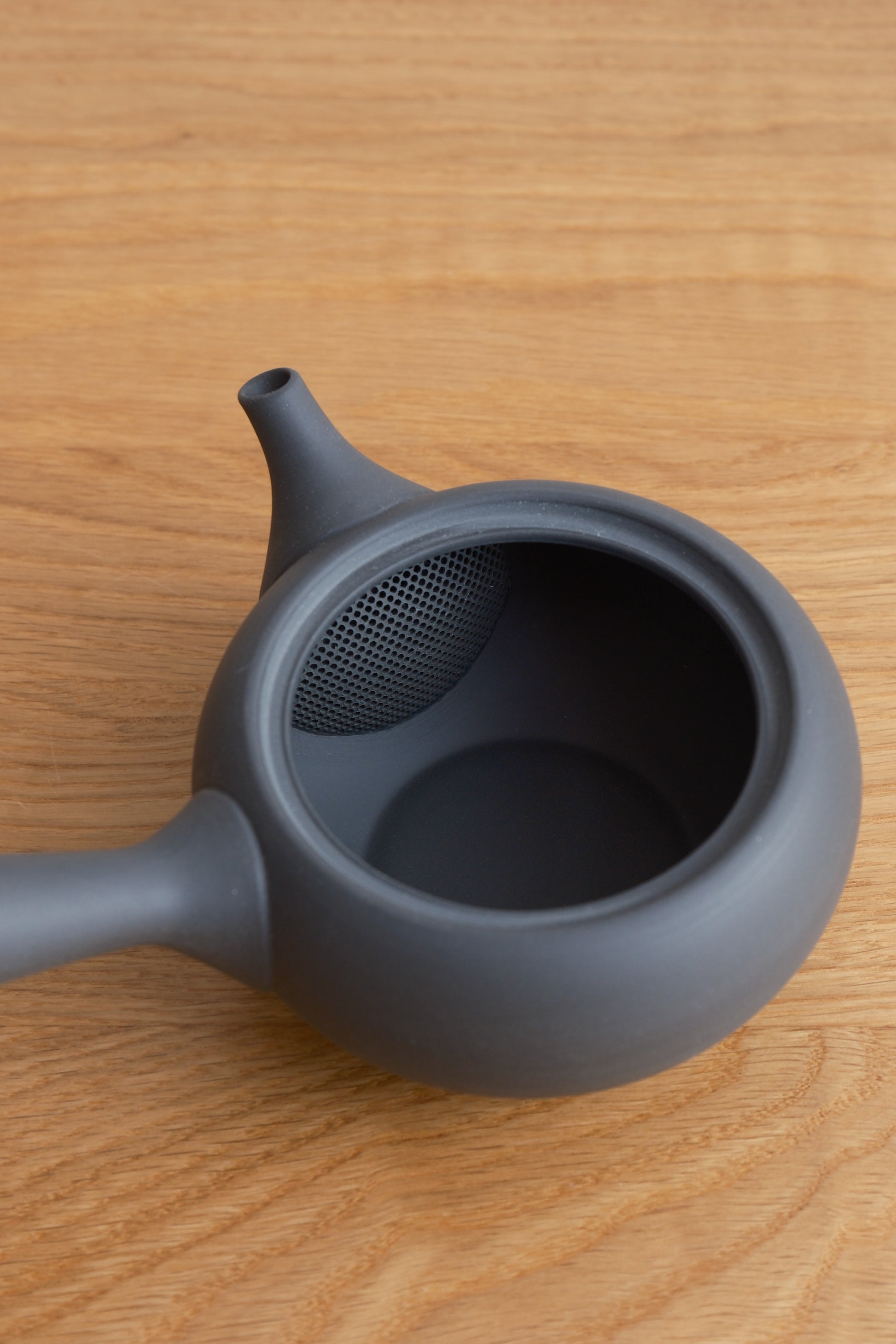Hira‑Kyūsu frá Azmaya er teketill með einfaldri og fágaðri hönnun, framleiddur í Tokoname, einu af sex helstu keramikhéraðum Japans. Ketillinn er handgerður úr svörtum Udei-leir.