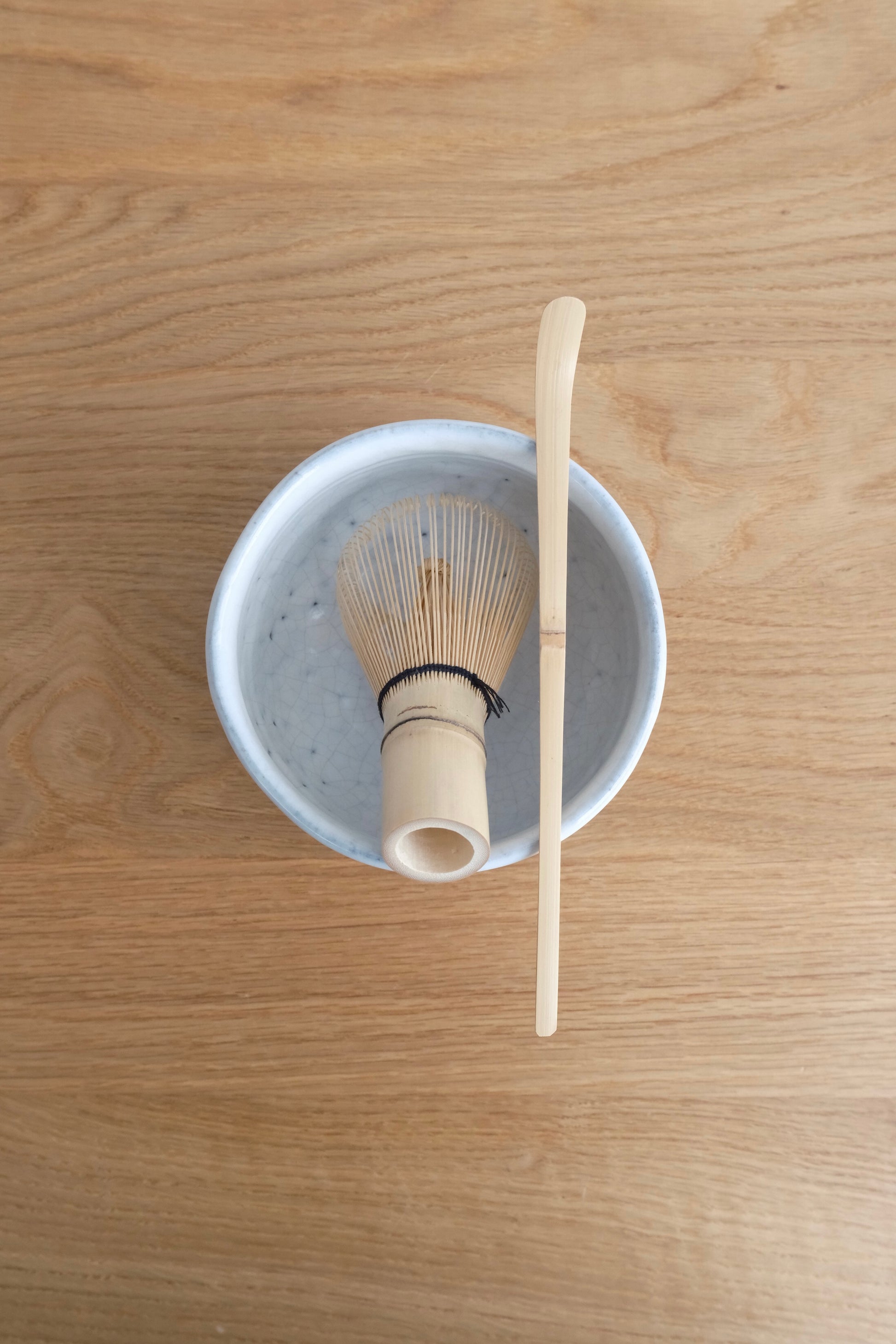 Chashaku er hefðbundin skeið úr bambus sem notuð er til að mæla matcha-duft. Hún er hluti af klassískum matcha-áhöldum – létt, látlaus í hönnun og ómissandi í undirbúningi matcha.