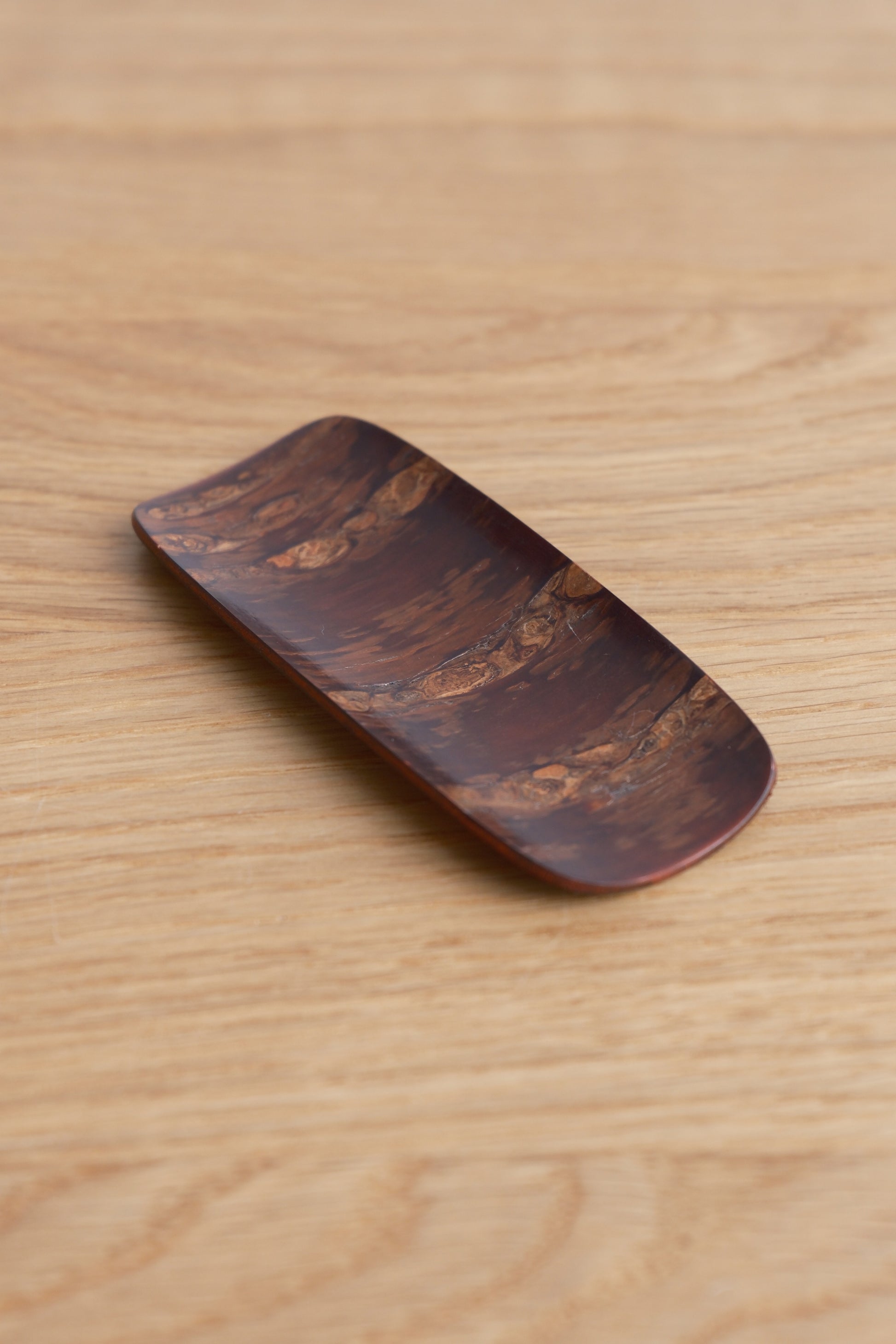 Chami er látlaus og vönduð teskeið úr japönskum kirsuberjabörk, handgerð af Fujiki Denshiro Shoten með hefðbundinni aðferð. Skeiðin passar fallega í testauk frá sama framleiðanda og liggur vel í hendi. Með daglegri notkun tekur yfirborðið smám saman á sig gljáa og hlýjan karakter.